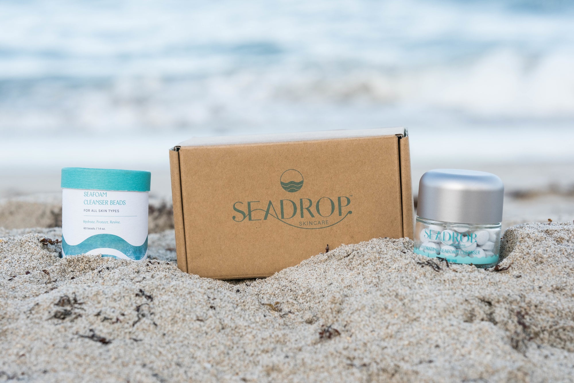 The top ingredient in most skincare products (~70-90% of each bottle) is water: the same water we have on tap at home. Water is not only heavy and carbon-intensive to ship, but it’s also the reason we need artificial preservatives in skincare products. Seadrop creates dry, preservative-free concentrates in zero-waste, refillable packaging for skincare that’s cleaner for both the planet AND your skin. Read more about why we chose waterless HERE.