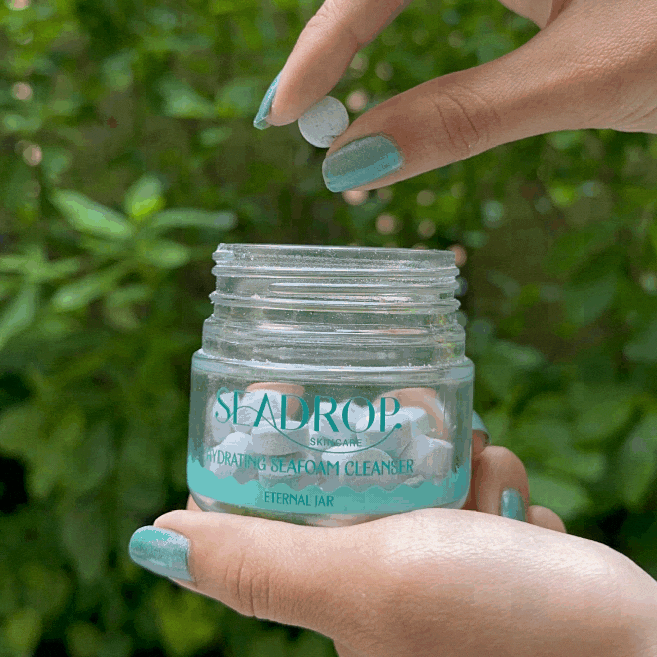 With just a splash of water, the Waterless Hydrating Seafoam Cleanser lathers to a rich, luxurious foam to whisk away toxins and dirt from your skin. Each cleanser bead is perfectly portioned and is freshly activated every time you use it -- each bead transforms into a purifying, hydrating, makeup-removing cleanser at home with just a few drops of water.